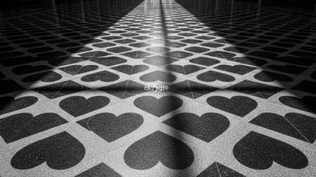 Captivating play of light and shadow over textured floor tiles creates an artistic monochrome design. The contrast highlights geometric patterns and enhances visual appeal.