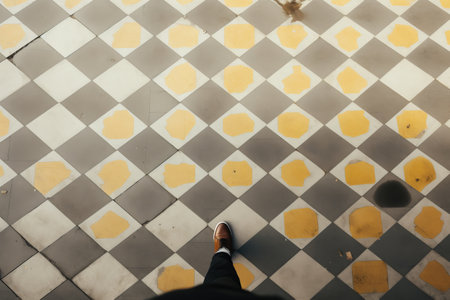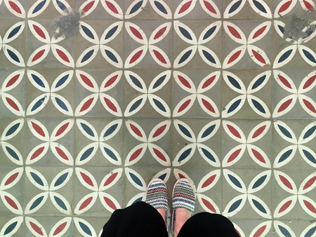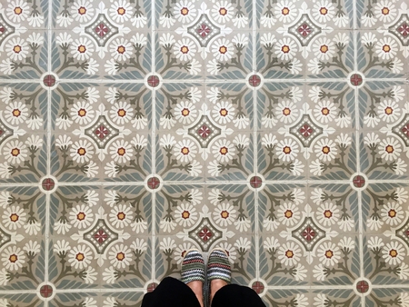Feet over vintage tiled floor