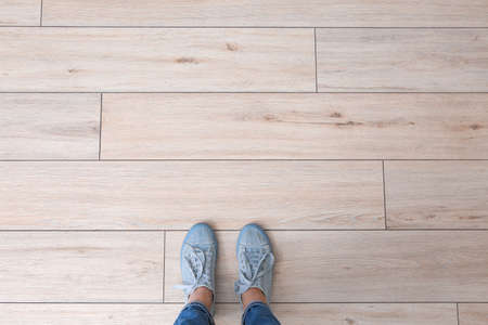 standing on the wooden floor background