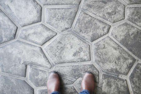 man in shoe on the concrete floor. pov
