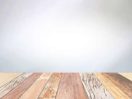 Empty wood table over blurred abstract crack wall background, product display template,deck,