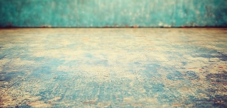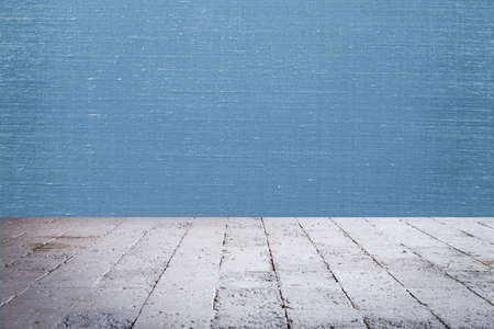 Old grunge interior with wooden floor and blue wall. Vintage background