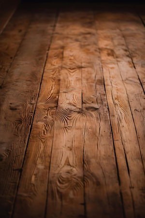 A close up view of a rustic wooden surface emphasizes the texture and natural grain patterns of the planks inviting tactile exploration.