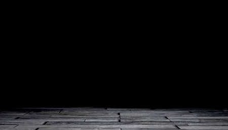 Room interior vintage with black wall and wood floor background