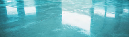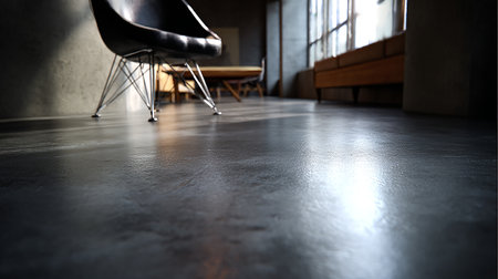 A close-up view of a glossy industrial floor reflecting natural light in a modern space, ideal for showcasing contemporary interior design elements and aesthetics.