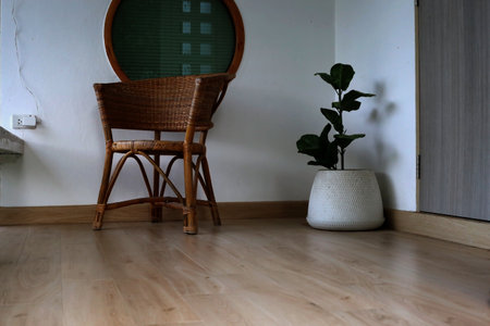 Wicker chair on the wooden floor in a living room, stock photo