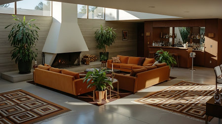 An AI generated illustration of a modern comfortably arranged living room interior design