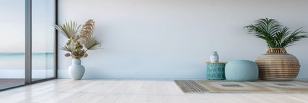 Minimalistic zen interior design composition with vibrant colors and modern decor designer elements