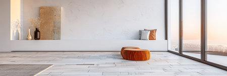 Evoke calm and simple living with this sunlit minimalist interior. Perfect for lifestyle marketing, product displays, and showcasing modern design aesthetics.