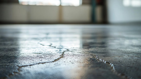 Cracked asphalt road surface showing wear and tear in urban area