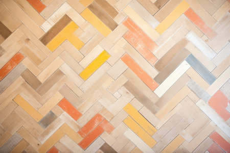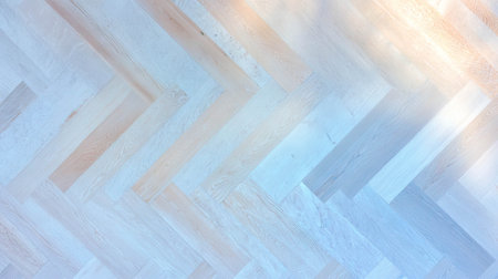 Light brown wooden floor features planks arranged in a herringbone pattern, highlighting natural grain and texture, ideal for interior design projects