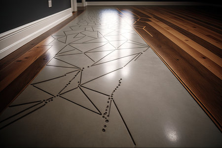concrete floor with patterns and nail trim in interior of house hardwood floor, created with generative ai