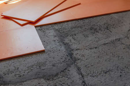 Expanded polystyrene for floor insulation, installation of expanded polystyrene on the floor with waterproofing, warming with waterproofing.
