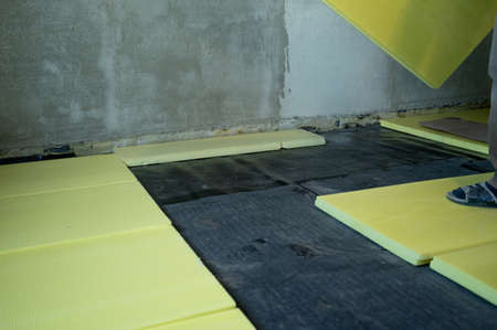 Expansion polystyrene installation for floor thermal insulation in new house
