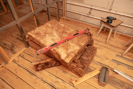 Mineral wool for repairs, building materials, roof insulation for a house under construction