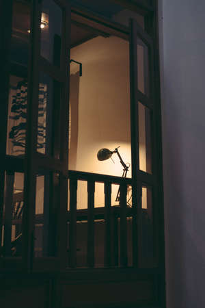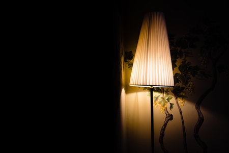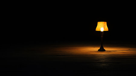 An elegant low wattage lamp creates an atmosphere of seclusion and nostalgia in a darkened room.