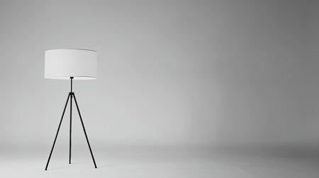 A stylish minimalist tripod floor lamp stands elegantly on a neutral background, showcasing its modern design and the perfect blend of simplicity and functionality.
