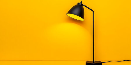 3d rendering of a black floor lamp on a yellow background.