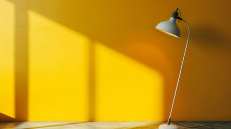 A minimalist lamp casting shadows on a yellow wall. The simple and artistic image is perfect for themes related to interior design, minimalism, and modern decor.