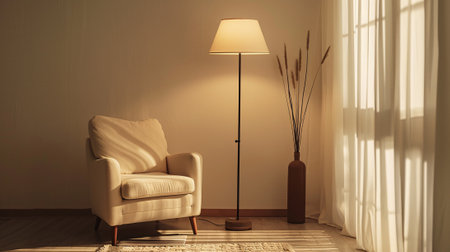 Floor lamp in living room. Idea for interior design. Generative Ai