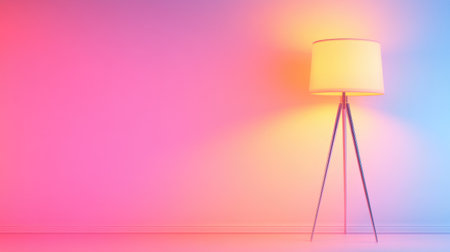A modern floor lamp emits a soft glow against a colorful gradient wall, creating a cozy ambiance ideal for contemporary interior design and decoration.