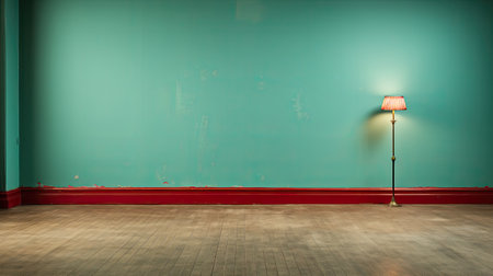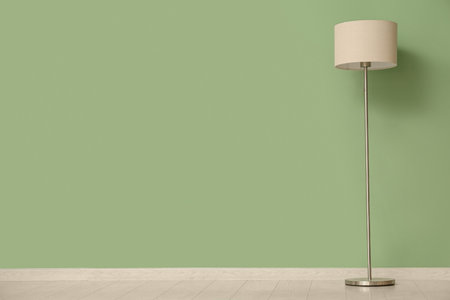 Interior of an empty room with floor lamp and green wall.