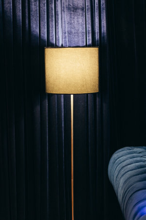 Floor lamp standing at curtain in living room lighting in the night