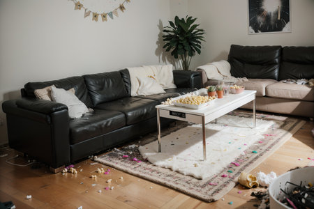 Messy living room interior. After party chaos