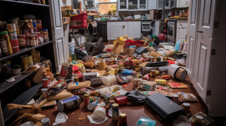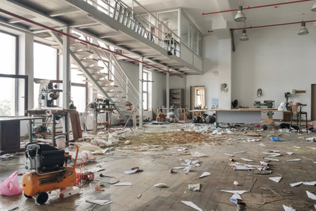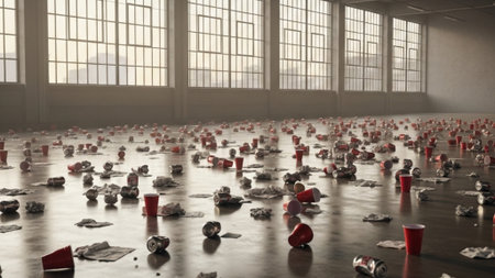 Generative AI Image of Scattered Trash Rubbish Garbage at Dirty Modern Workspace Office