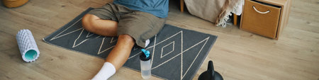 Person lying on carpet with leisure and relaxation in mind Surrounded by home accessories and furniture, creating a cozy atmosphere