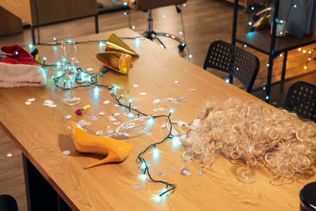 Messy office after New Year party celebration