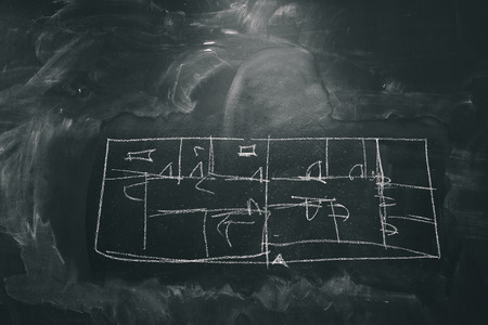 Close up image of a detailed diagram on a whiteboard, illustrating complex processes, plans, and data visualization.