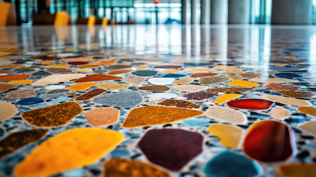 Discover the beauty of colorful decorative terrazzo flooring in this close-up shot. The vibrant patterns and textures create a stunning visual for any space.
