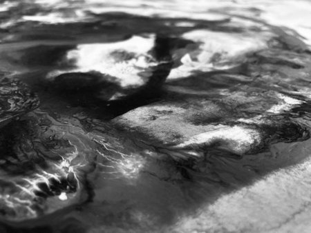 Close Up Black and White Colors Fluid Pouring Abstract Art Acrylic Painting Texture Background