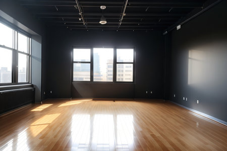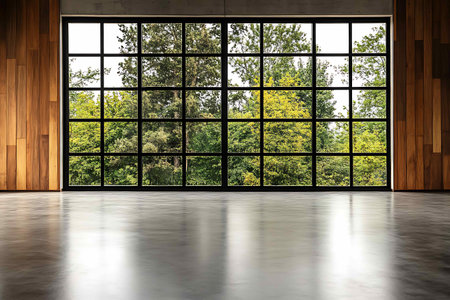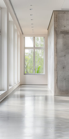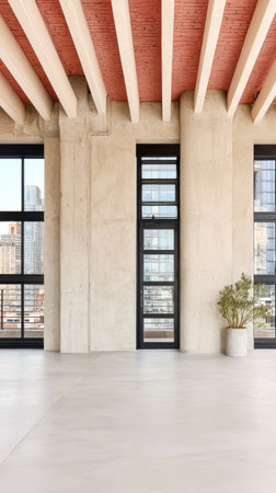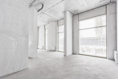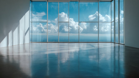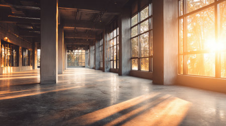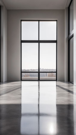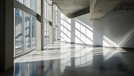 Spacious and Bright Empty Interior with Large Windows and Natural Light in Modern Architectural Design