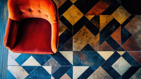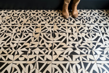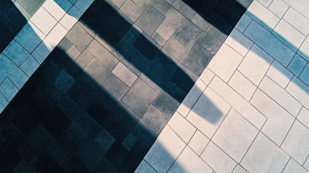 Top view of a modern, patterned tile floor with a sleek finish and geometric shapes, perfect for contemporary design.