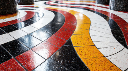 Discover the beauty of colorful decorative terrazzo flooring in this close-up shot. The vibrant patterns and textures create a stunning visual for any space.