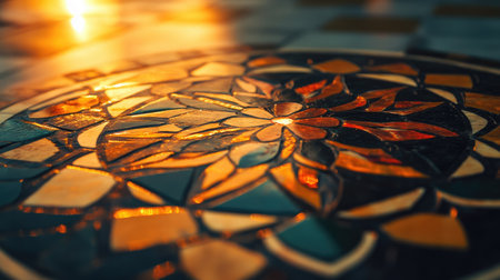 Beautiful mosaic pattern showcasing vibrant colors and intricate designs, perfect for decorative art, architecture, or cultural themes. Ideal for various projects.