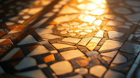 close-up of intricate mosaic tile floor pattern in sleek modern home, created with generative ai