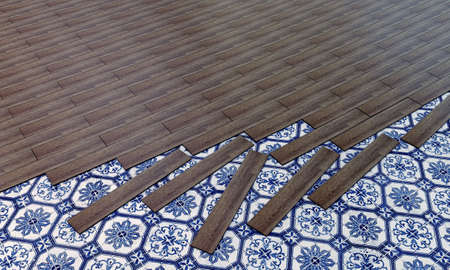 Ceramic tiles flooring - texture of natural ceramic floor decorating as wood.