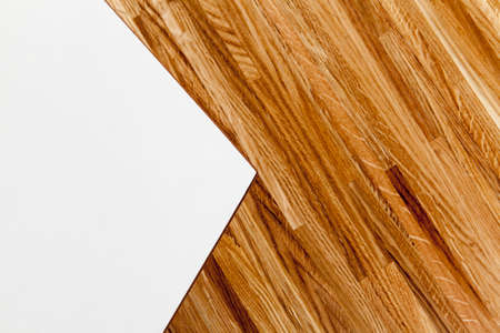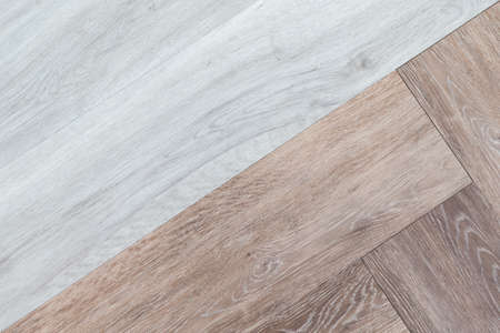 Closeup of two tone abstract background white and brown wooden flooring.