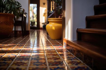 Colorful patterned tiles. Tile work of a classic style home. Generative AI illustration