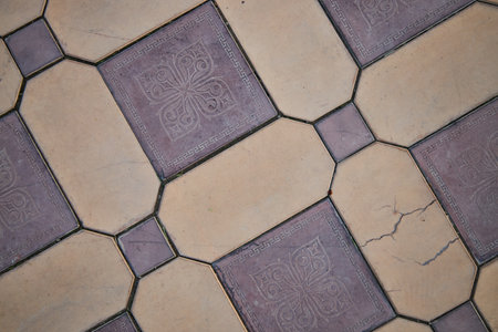 ceramic tile with geometrical drawing on floor