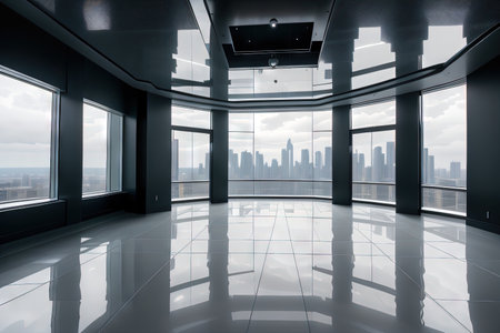abstract futuristic glass architecture with empty floor for presentation