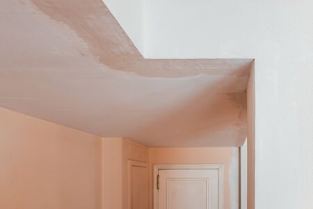 Ceiling in home maintenance repairs, painted white.