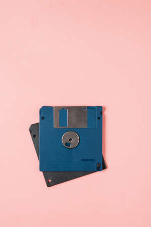 Old floppy disks for computer on pink background