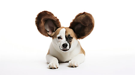 Dog with bunny ears isolated on a white background. AI generative