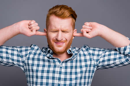Man Grinning and Stopping Ears With Fingers