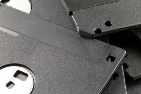 Closeup of a 3.5 inch floppy disk. Vintage computer items. Retro.