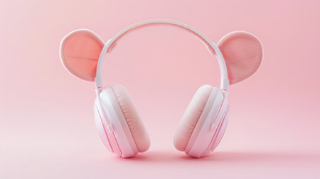 Photo of mouse-shaped headphones with pink ears and soft cushions , isolated on simple pastel color background, photorealistic, hyperrealistic --ar 16:9 Job ID: eb1fe8ff-de4d-4c09-86d1-3ea28a1bb5f7